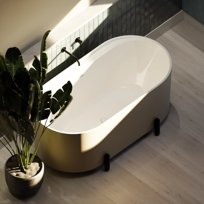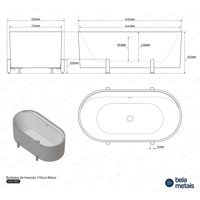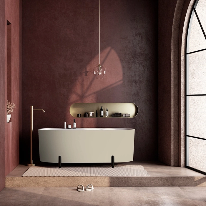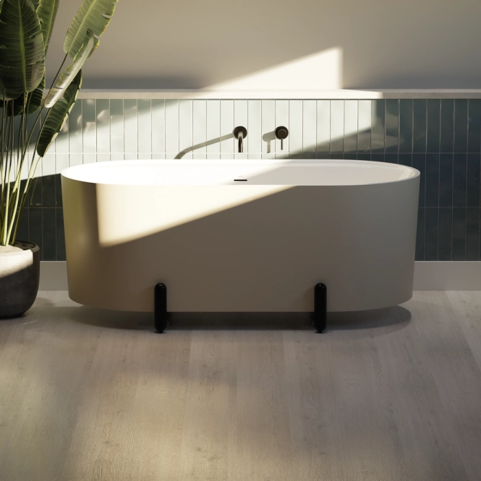 Banheira de Imersão 150cm Mainz Bege Fosca com Pés Preto Fosco