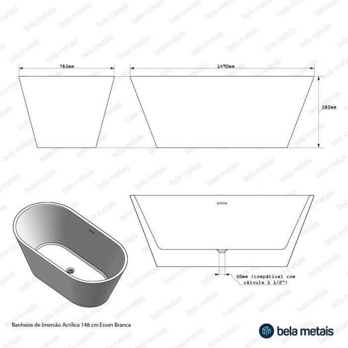 Banheira de Imersão Acrílica 148 cm (Essen Branca) - Outlet