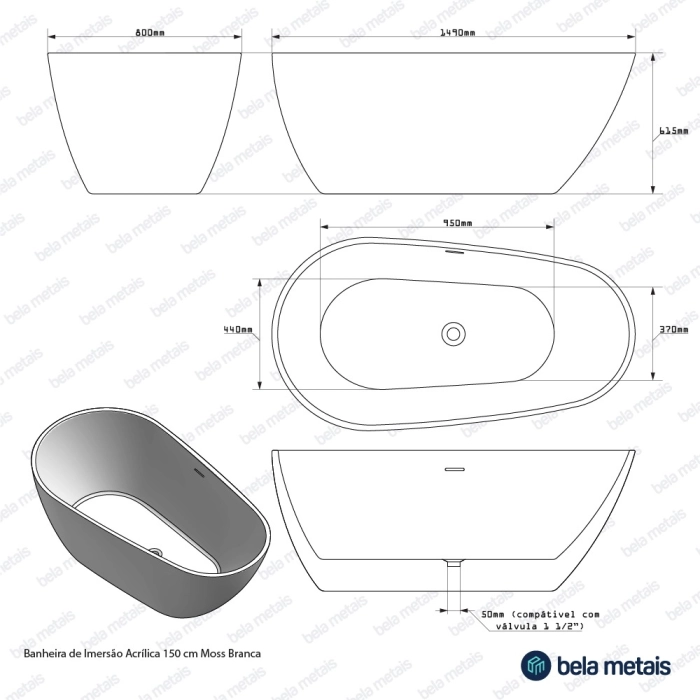 Banheira de Imersão Acrílica 150 cm (Moss Branca)