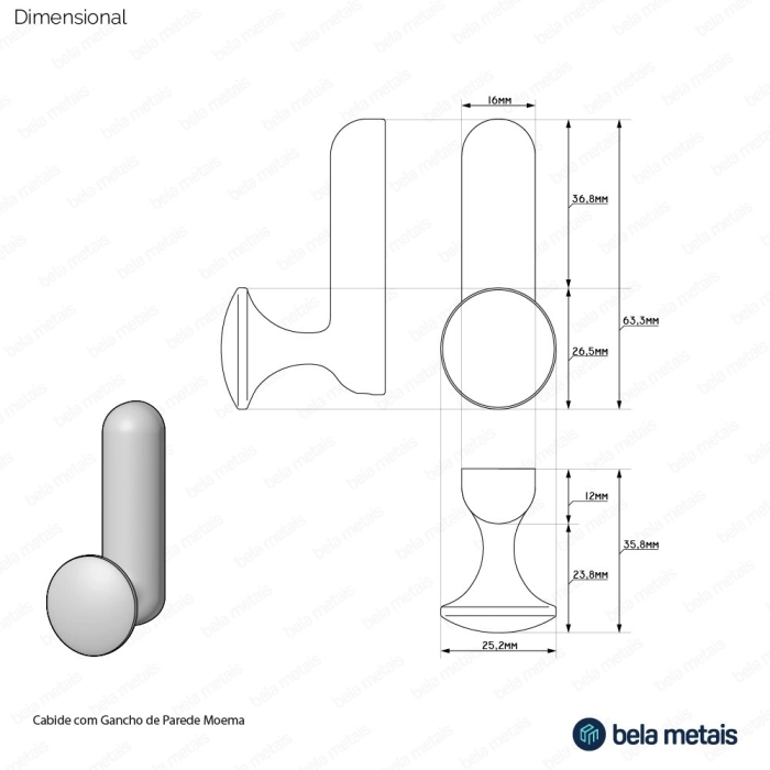 Cabide com Gancho de Parede Zamac (Jardins Escovado)