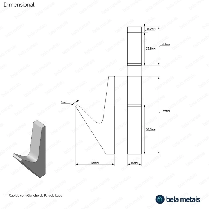 Cabide com Gancho de Parede Zamac (Lapa Preto Fosco)
