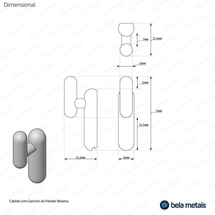 Cabide com Gancho de Parede Zamac (Moema Rosé Gold Fosco)