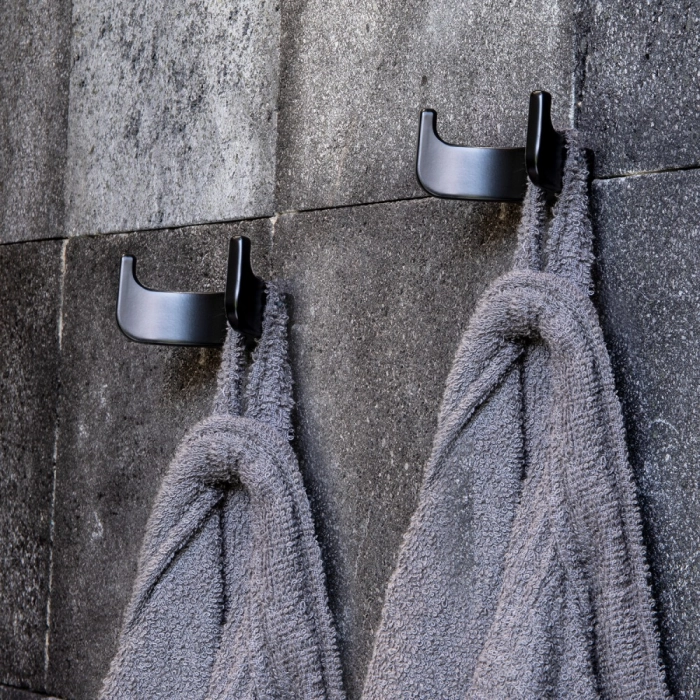 Cabide com Gancho Duplo de Parede Zamac (Batel Preto Fosco)