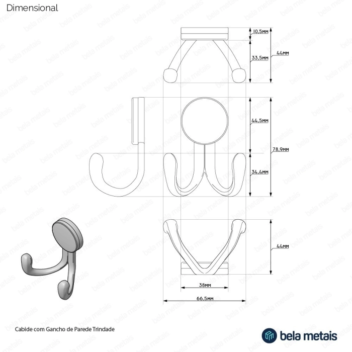 Cabide com Gancho Duplo de Parede Zamac (Trindade Dourado Fosco)