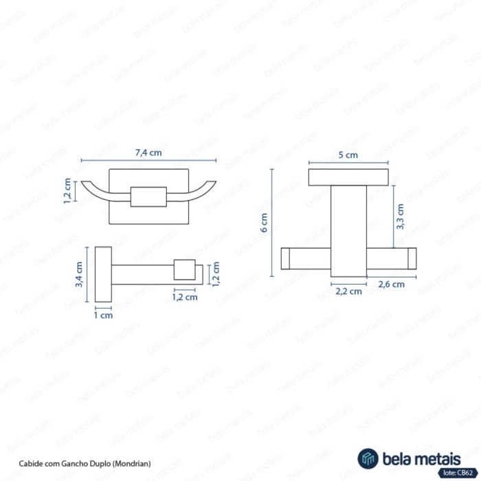 Cabide com Gancho Duplo (Mondrian Cromado)