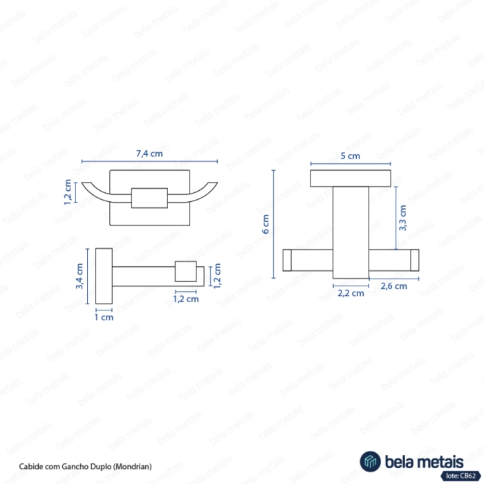 Cabide com Gancho Duplo (Mondrian Preto Fosco)