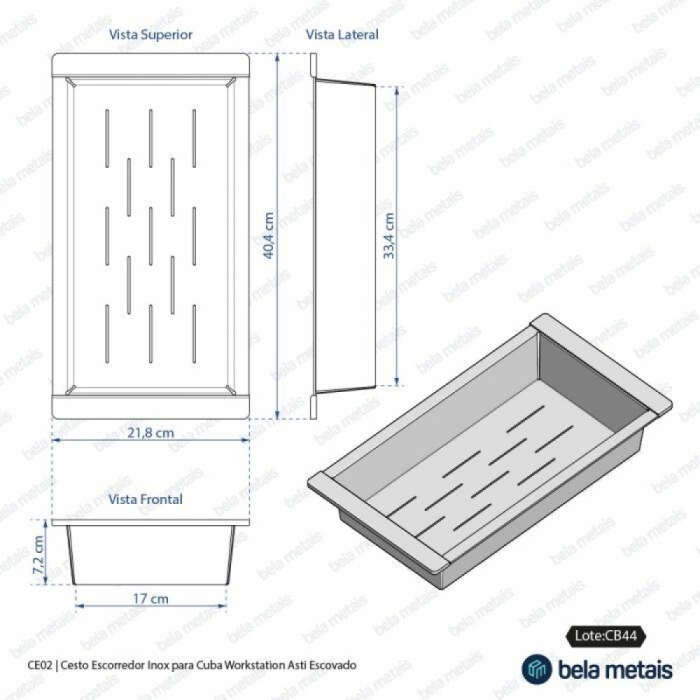 Cesto Escorredor Inox para Cuba Workstation 40x22 cm (Escovado)