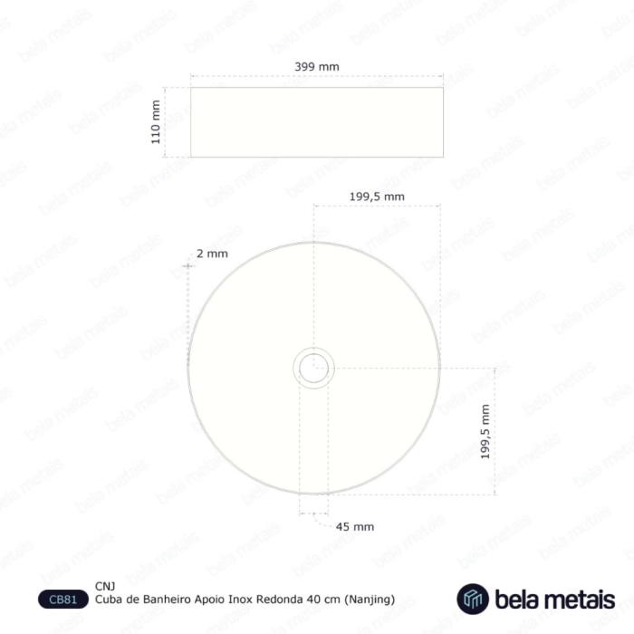 Cuba de Banheiro Apoio Inox Redonda 40 cm (Nanjing Grafite Fosca)