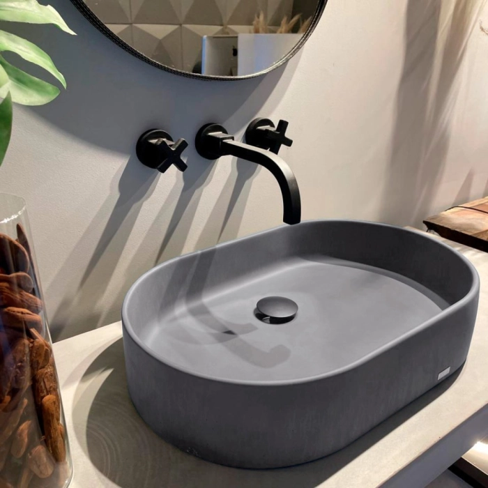 Cuba de Banheiro Concreto Apoio Elipse 55 cm (Lotus Grafite)