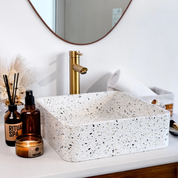 Cuba de Banheiro Concreto Apoio Quadrada 39 cm (Guna Granilite Opala)