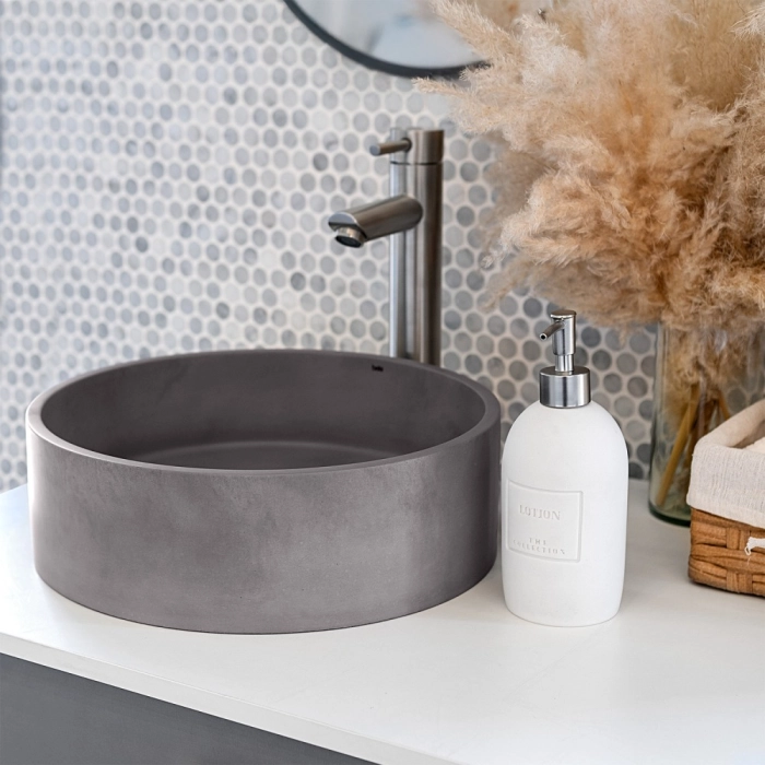 Cuba de Banheiro Concreto Apoio Redonda 35 cm (Oso Cemento)