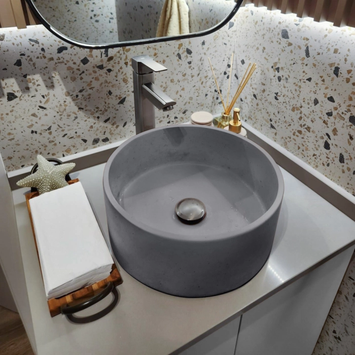 Cuba de Banheiro Concreto Apoio Redonda 35 cm (Small Grafite)