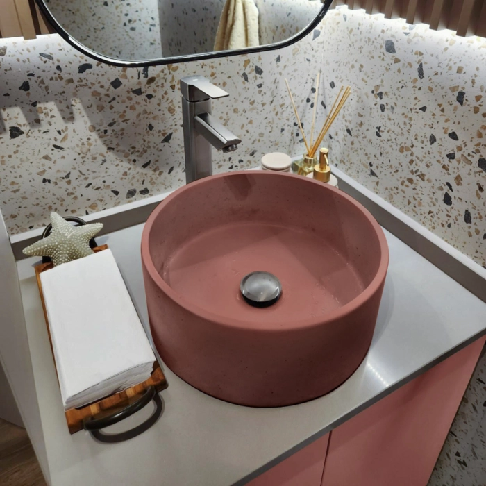 Cuba de Banheiro Concreto Apoio Redonda 35 cm (Small Terracota)