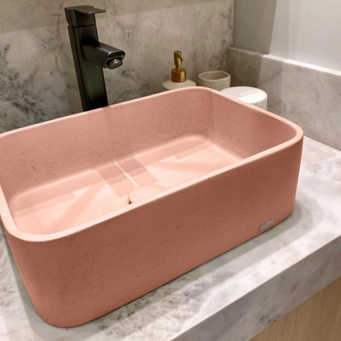 Cuba de Banheiro Concreto Apoio Retangular 42 cm (Tessa Rosé)