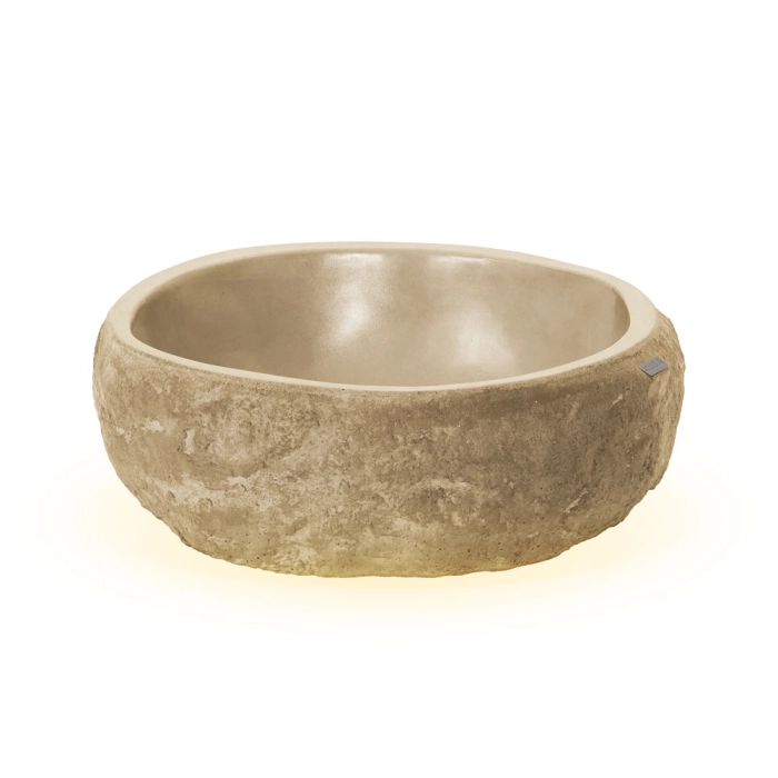 Cuba de Banheiro Concreto Apoio Rocha 37 cm com LED (Kivi Travertino)