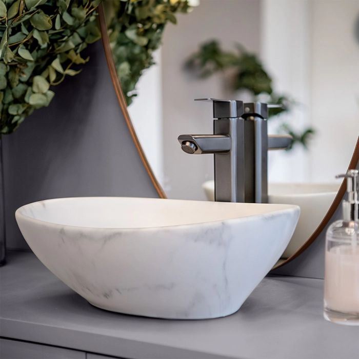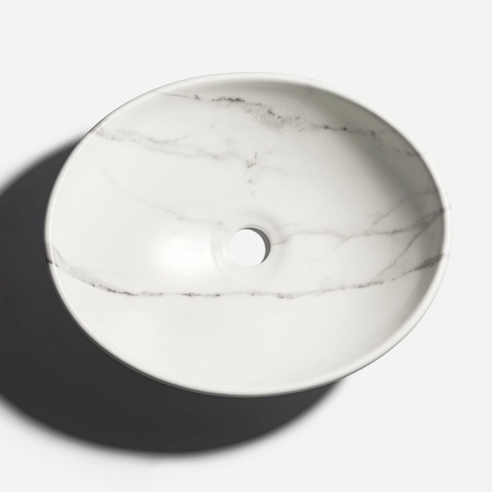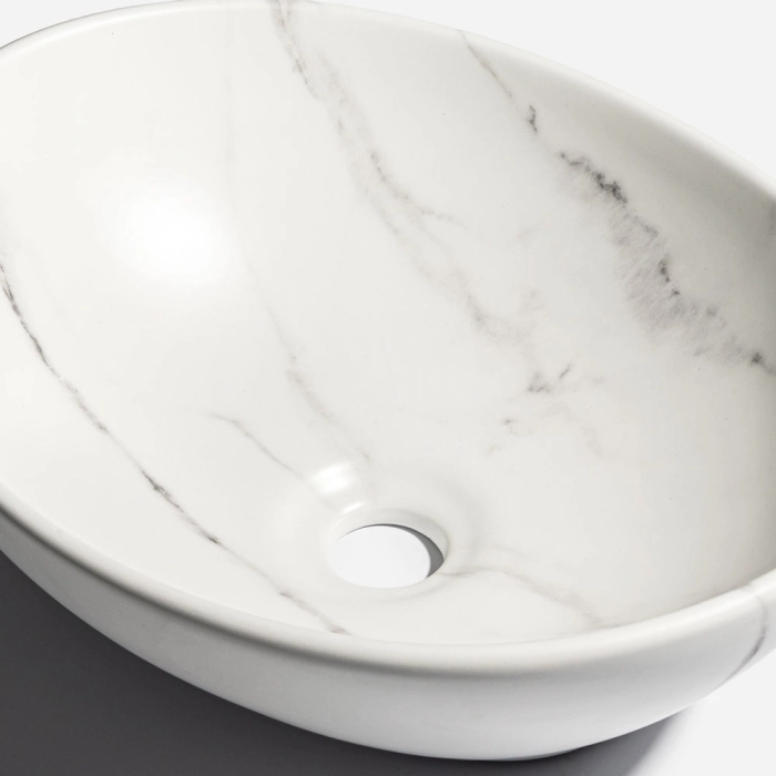 Cuba de Banheiro Louça Apoio Oval 41 cm (Bari Mármore Calacata)