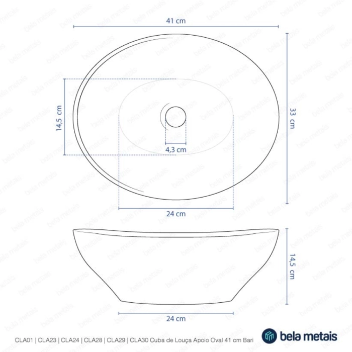 Cuba de Banheiro Louça Apoio Oval 41 cm (Bari Mármore Grigio)