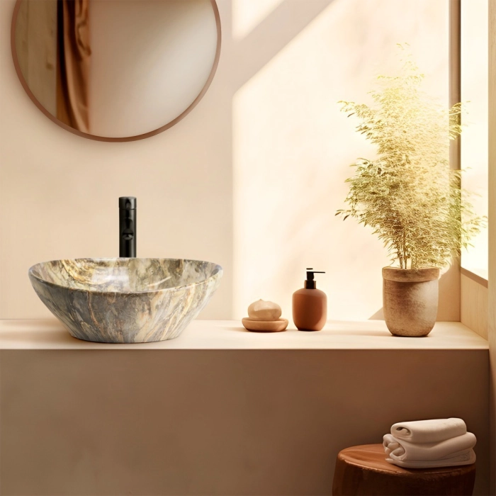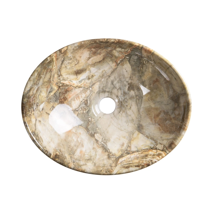 Cuba de Banheiro Louça Apoio Oval 41 cm (Bari Mármore Ônix Marrom)