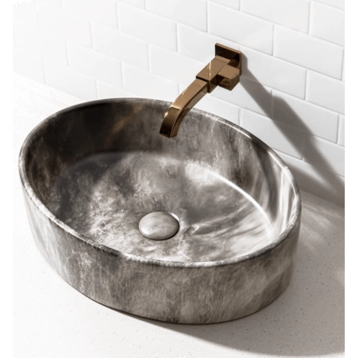 Cuba de Banheiro Louça Apoio Oval 50 cm (Spezia Mármore Grigio)