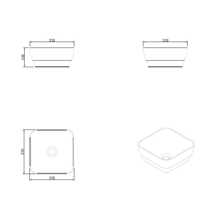 Cuba de Banheiro Louça Apoio Quadrada 31 cm (Tassa Branca)