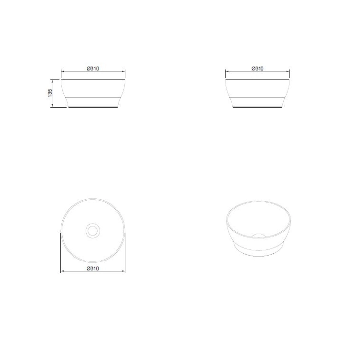 Cuba de Banheiro Louça Apoio Redonda 31 cm (Tassa Branca)