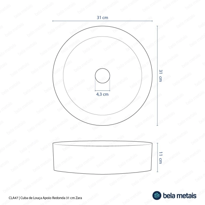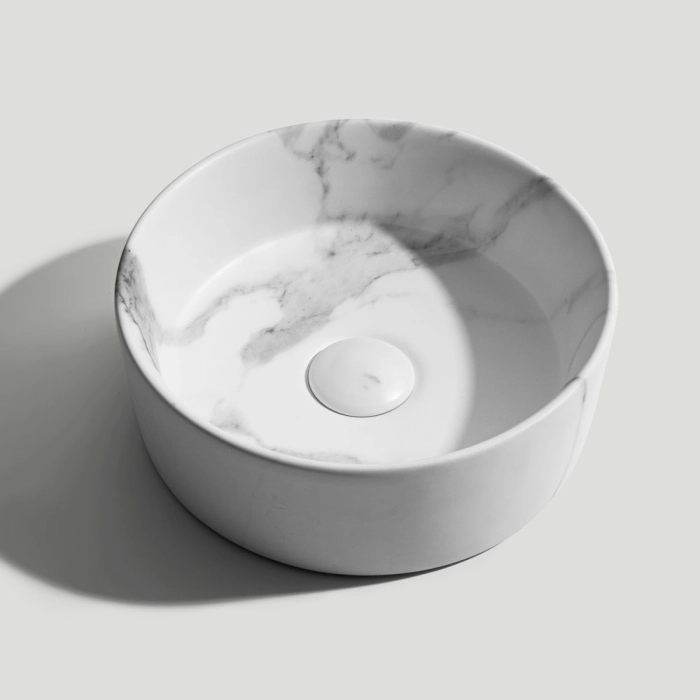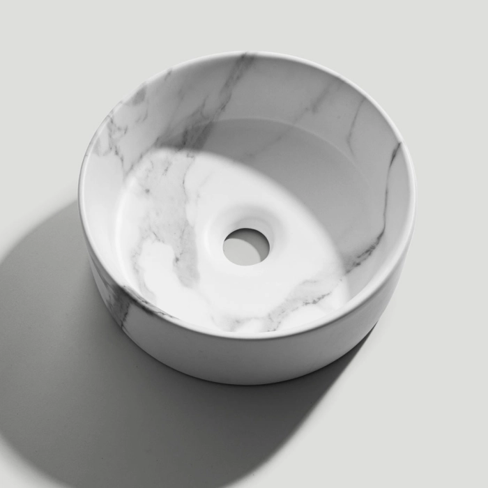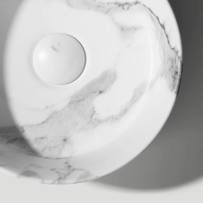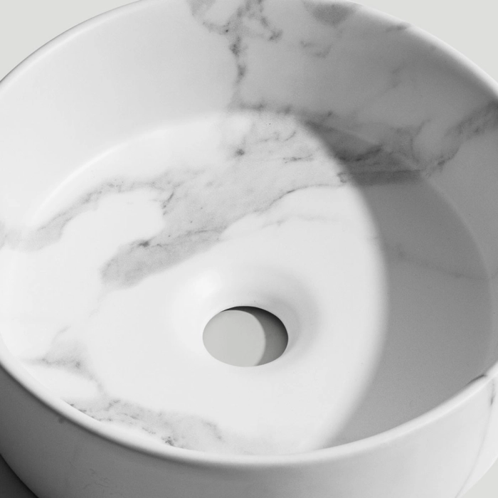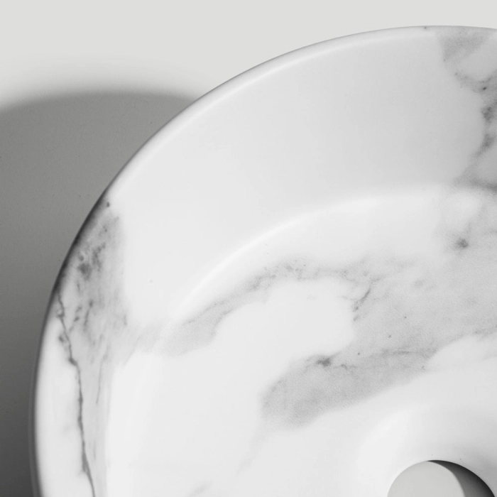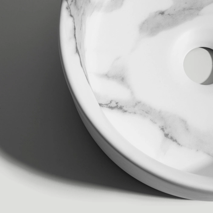 Cuba de Banheiro Louça Apoio Redonda 31 cm (Zara Mármore Calacata)