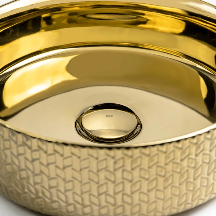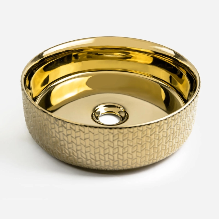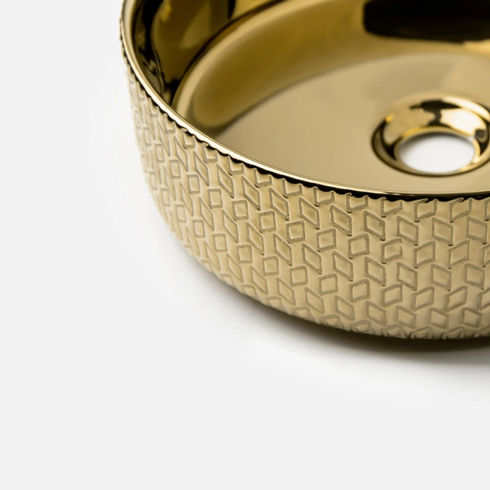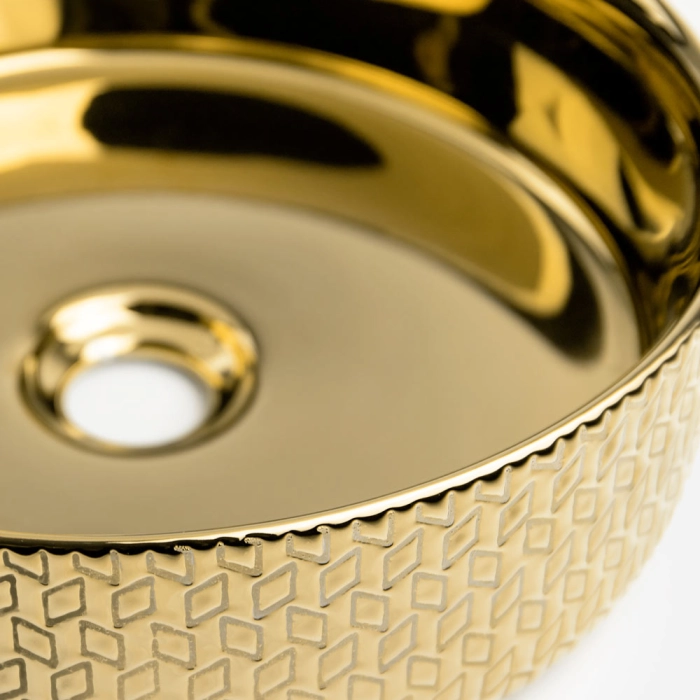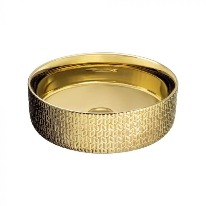 Cuba de Banheiro Louça Apoio Redonda 36 cm (Porto Dourada Metálica)
