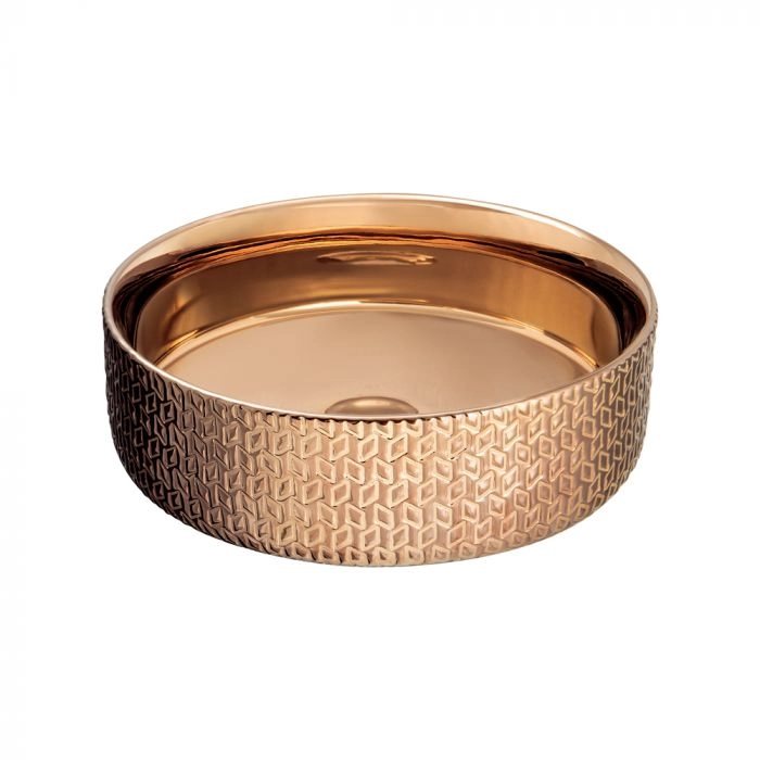 Cuba de Banheiro Louça Apoio Redonda 36 cm (Porto Rosé Gold Metálica) - Outlet