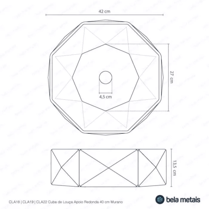 Cuba de Banheiro Louça Apoio Redonda 42 cm (Murano Branca)
