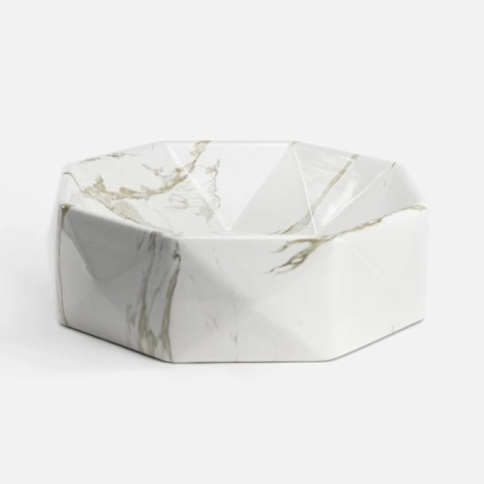 Cuba de Banheiro Louça Apoio Redonda 42 cm (Murano Mármore Carrara) - Outlet