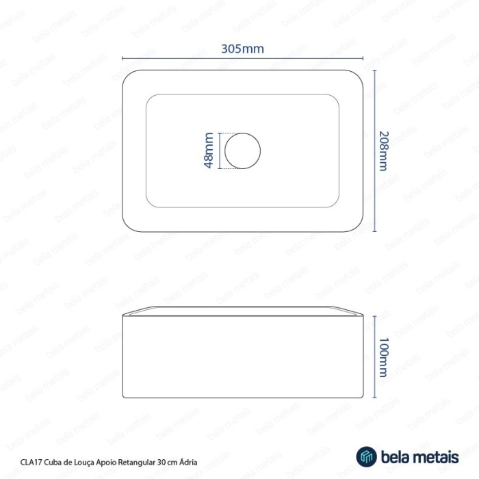 Cuba de Banheiro Louça Apoio Retangular 30 cm (Ádria Branca)