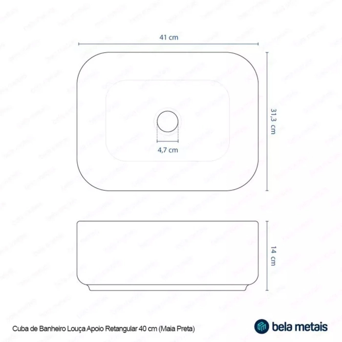Cuba de Banheiro Louça Apoio Retangular 40 cm (Maia Preta)
