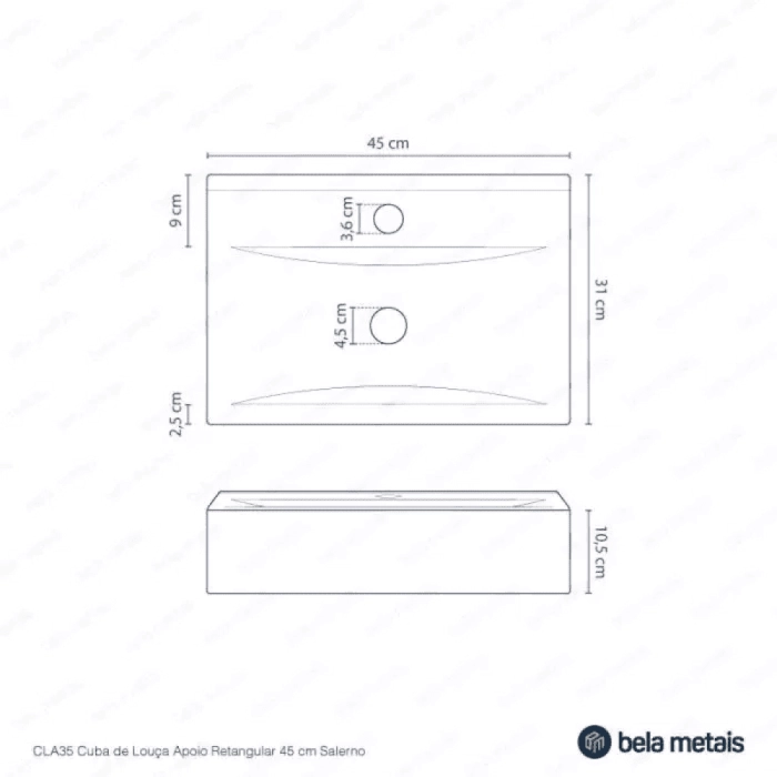 Cuba de Banheiro Louça Apoio Retangular 45 cm (Salerno Branca)
