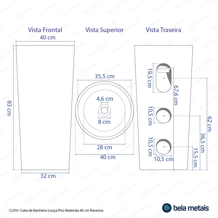 Cuba de Banheiro Louça Piso Redonda 40 cm (Ravenna Branca)