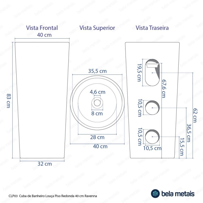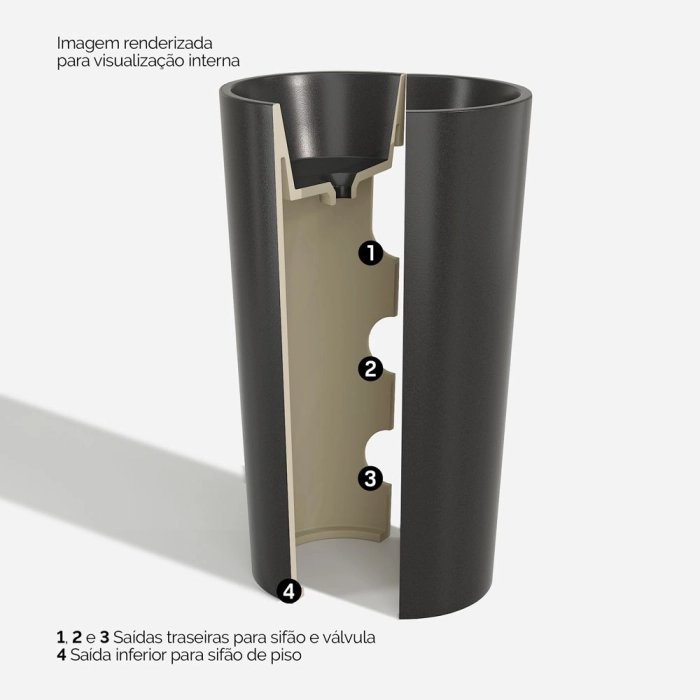 Cuba de Banheiro Louça Piso Redonda 39 cm (Ravenna Preta)