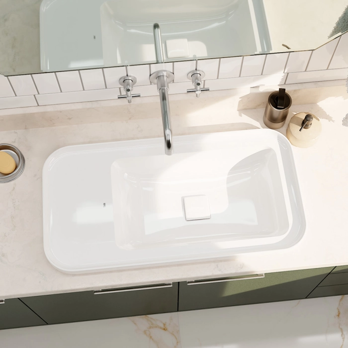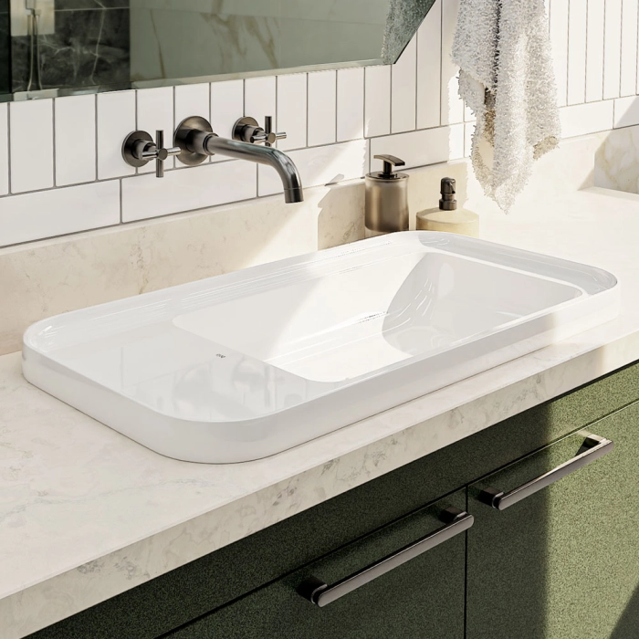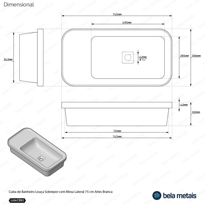 Cuba de Banheiro Louça Sobrepor com Mesa Lateral 75 cm (Arles Branca)