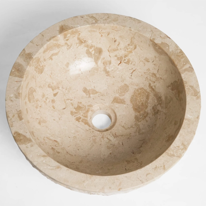 Cuba de Banheiro Mármore Cream Esculpida Apoio Redonda até 45 cm (Sumatra)