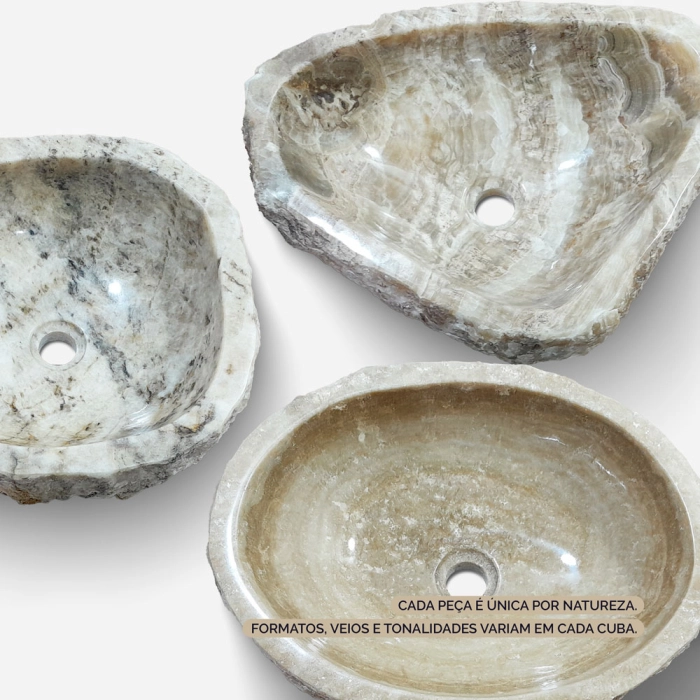 Cuba de Banheiro Mármore Ônix Rústica Apoio Redonda até 50 cm (Gili)