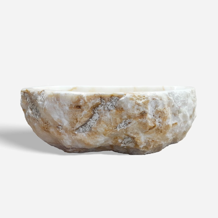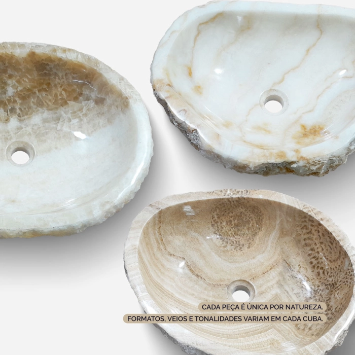Cuba de Banheiro Mármore Ônix Rústica Apoio Redonda até 60 cm (Gili)