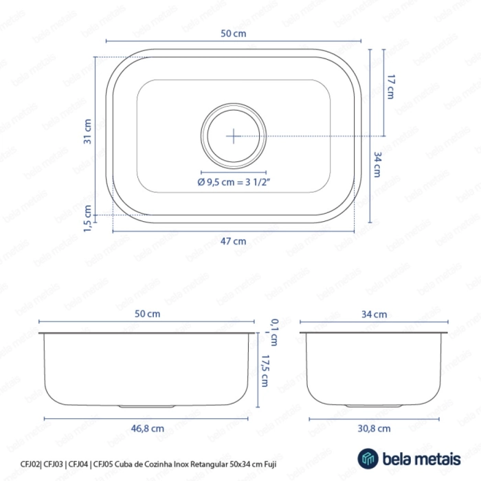 Cuba de Cozinha Inox Retangular 50x34 cm (Fuji Rosé Gold Fosca)