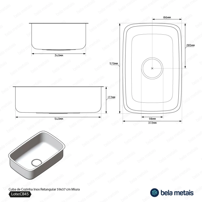 Cuba de Cozinha Inox Retangular 59x37 cm (Miura Rosé Gold Fosca)