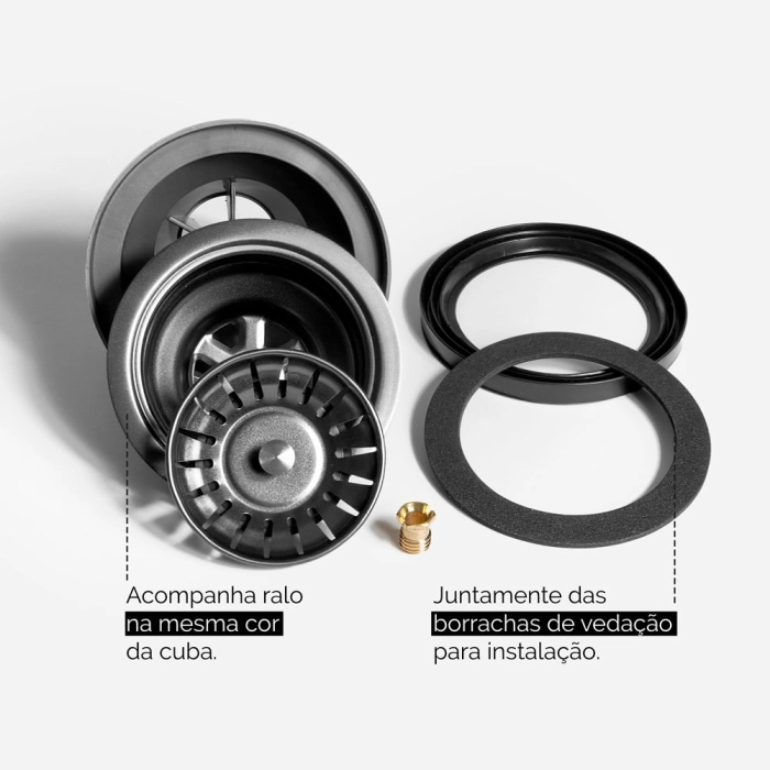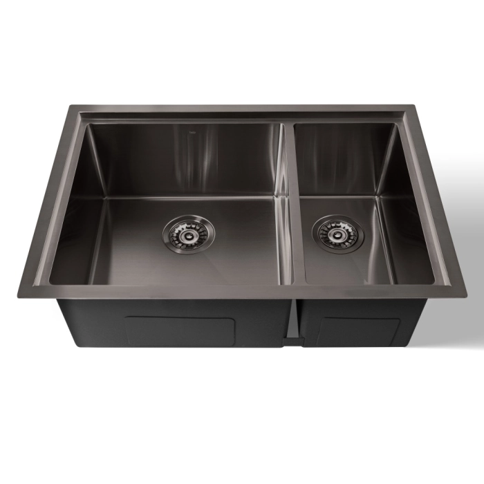 Cuba Dupla de Cozinha Inox Retangular 73x50 cm (Kai Grafite Fosca)