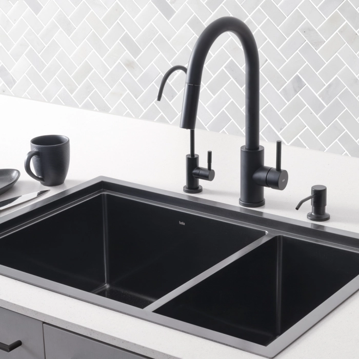 Dosador para Detergente Embutido Inox 500 ml (Flat Preto Fosco)