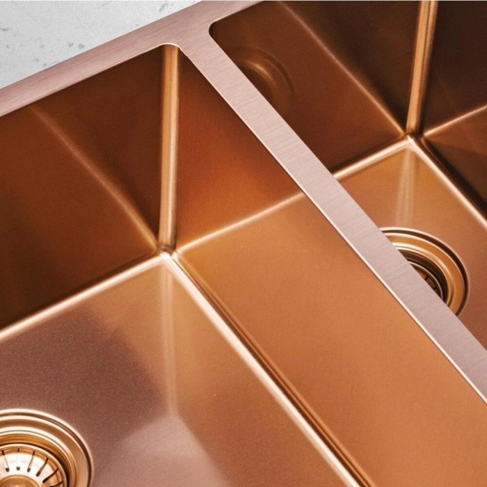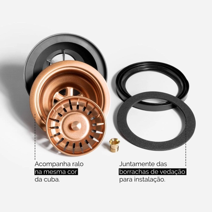Cuba Dupla de Cozinha Inox Retangular 73x50 cm (Kai Rosé Gold Fosca)