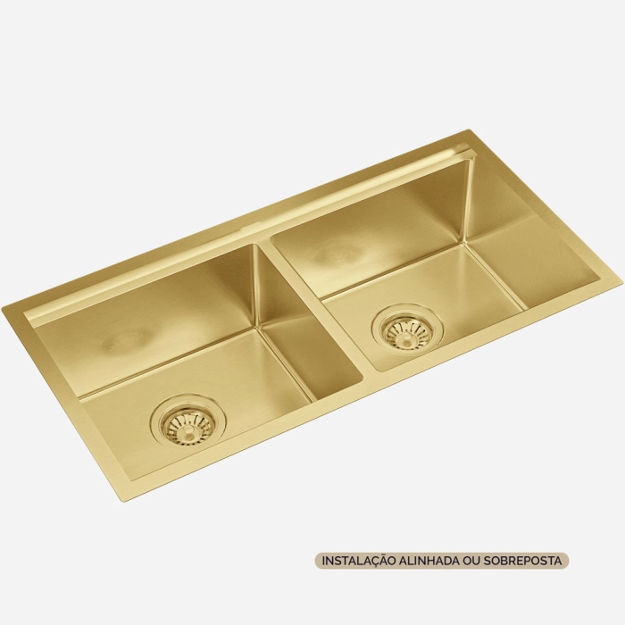 Cuba Dupla Workstation de Cozinha Inox 82x41 cm (Kobe Ouro Fosca)