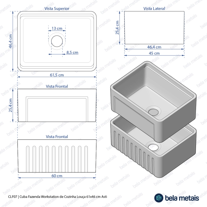 Cuba Fazenda Workstation de Cozinha Louça 61x46 cm (Asti Branca)
