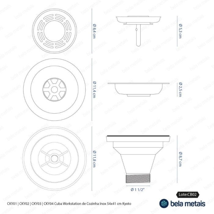 Cuba Workstation de Cozinha Inox 54x41 cm (Kyoto Dourada Fosca)