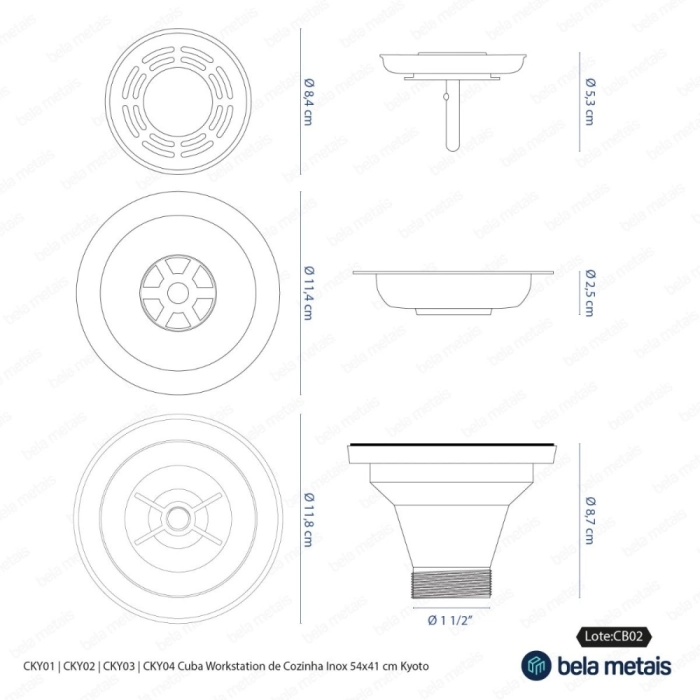 Cuba Workstation de Cozinha Inox 54x41 cm (Kyoto Grafite Fosca)