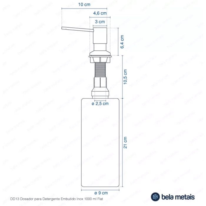Dosador para Detergente Embutido Inox 1000 ml (Flat Cromado) Código: DD13