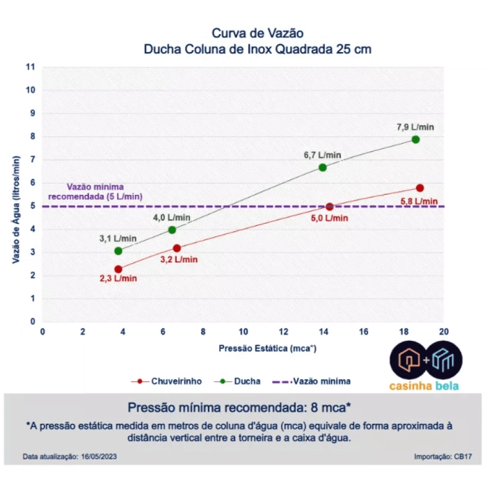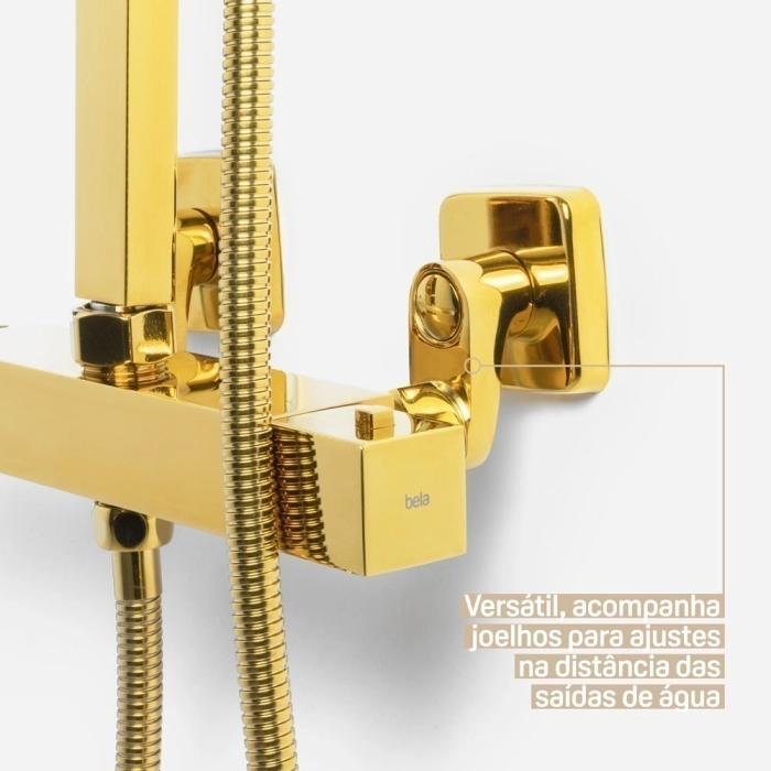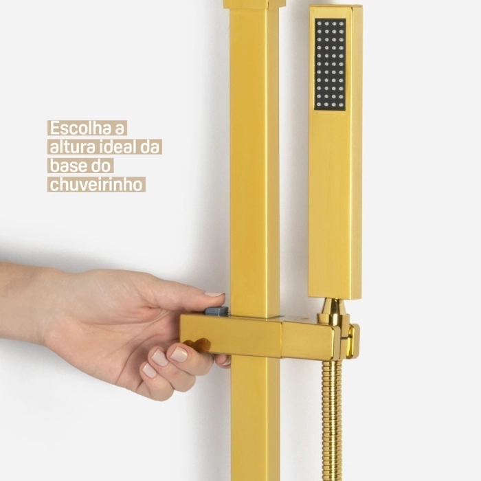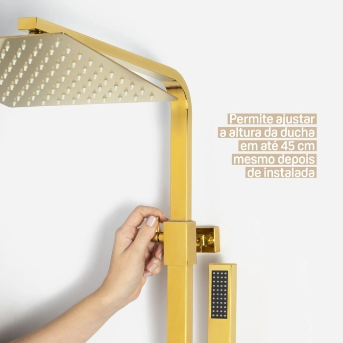Ducha Coluna de Inox Quadrada 25 cm (Dourada)
